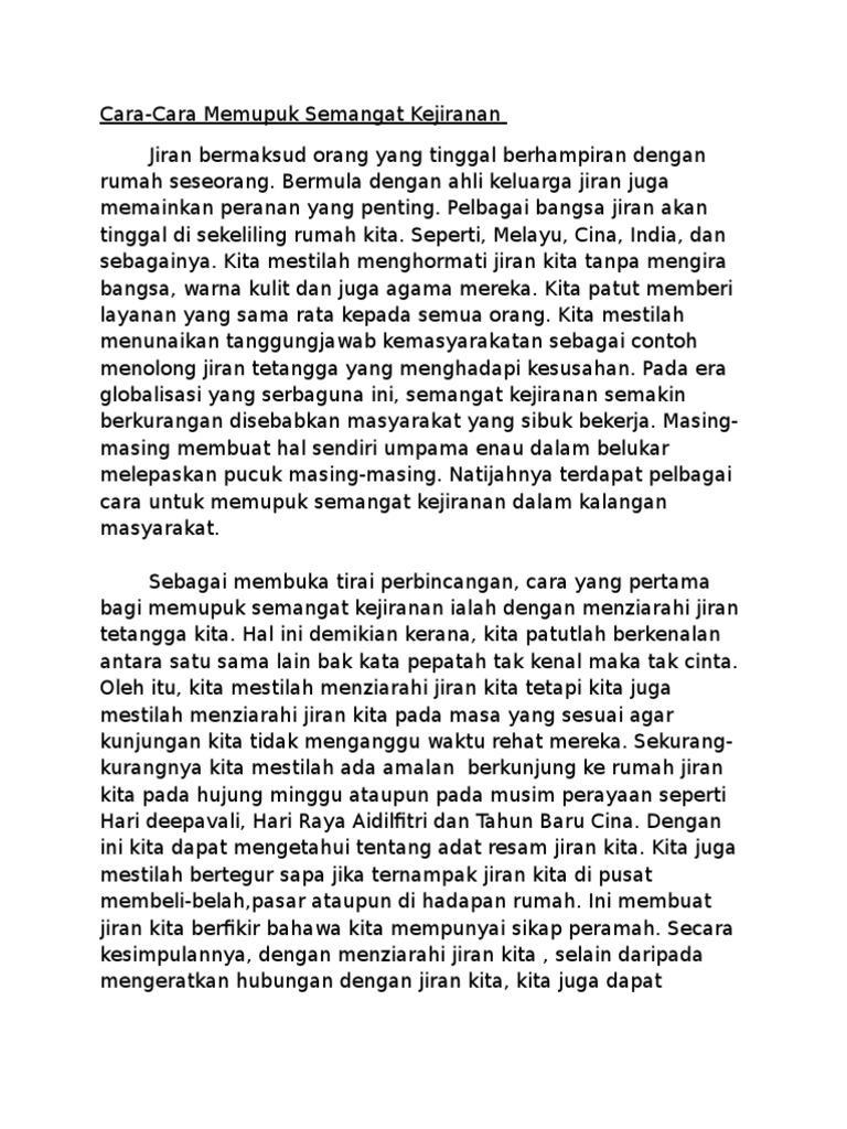 Cara Nak Memupuk Semangat Kejiranan Contoh Karangan Gahagian a. Cara Memupuk Semangat Kejiranan. Contoh Ulasan Cara Cara Memupuk Semangat Kejiranan Contoh Karangan Sukan Perpaduan Kaum Di Malaysia Terbaik.